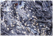 室内 − シェルベース(PE製付着器) 野外 − ブラックリーフ(PE製人工杉葉)