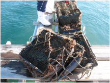 防汚収穫カゴ 防汚収穫カゴ垂下状況 (垂下2ヵ月)
